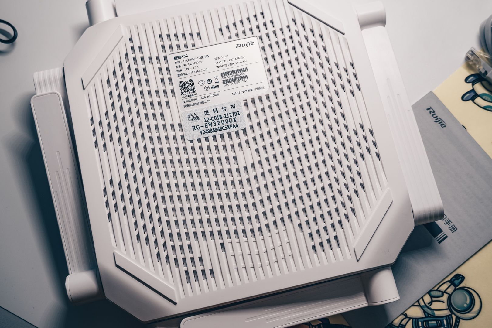 这款锐捷星耀X32路由器在底部有开孔,主要是为了散热,如果没有散热的设计长时间的使用下来可能会导致设备过热,影响网络的稳定性。