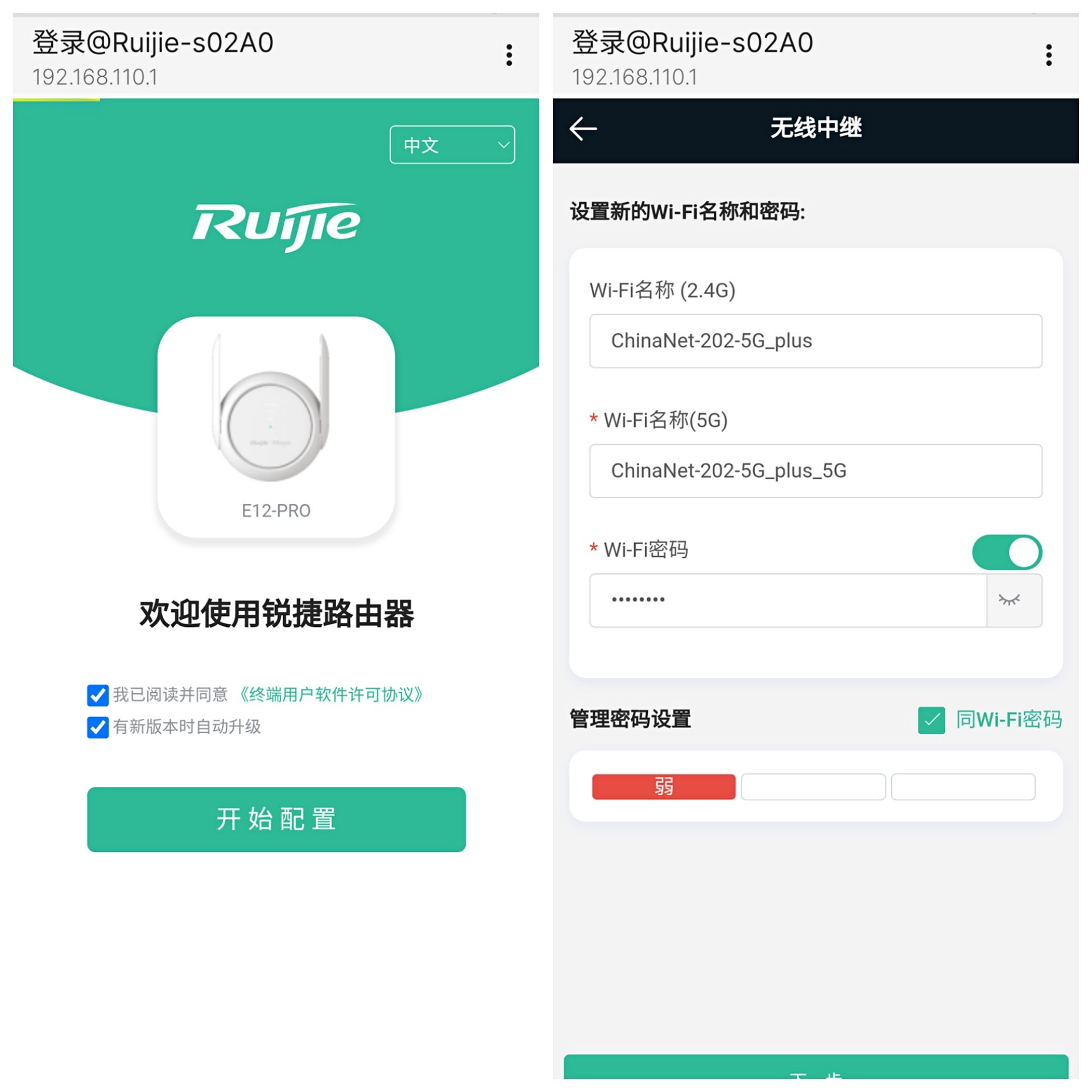 如果使用的是非星耀品牌的路由器,那么操作也非常的简单,只需要连接锐捷小兔子,手机将会自动弹出放大器管理界面,然后输入主路由器的密码就能完成连接。