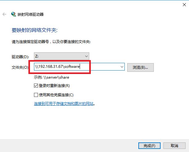 在弹出框中输入如下路径,点击完成,即可看到共享的文件夹内容。