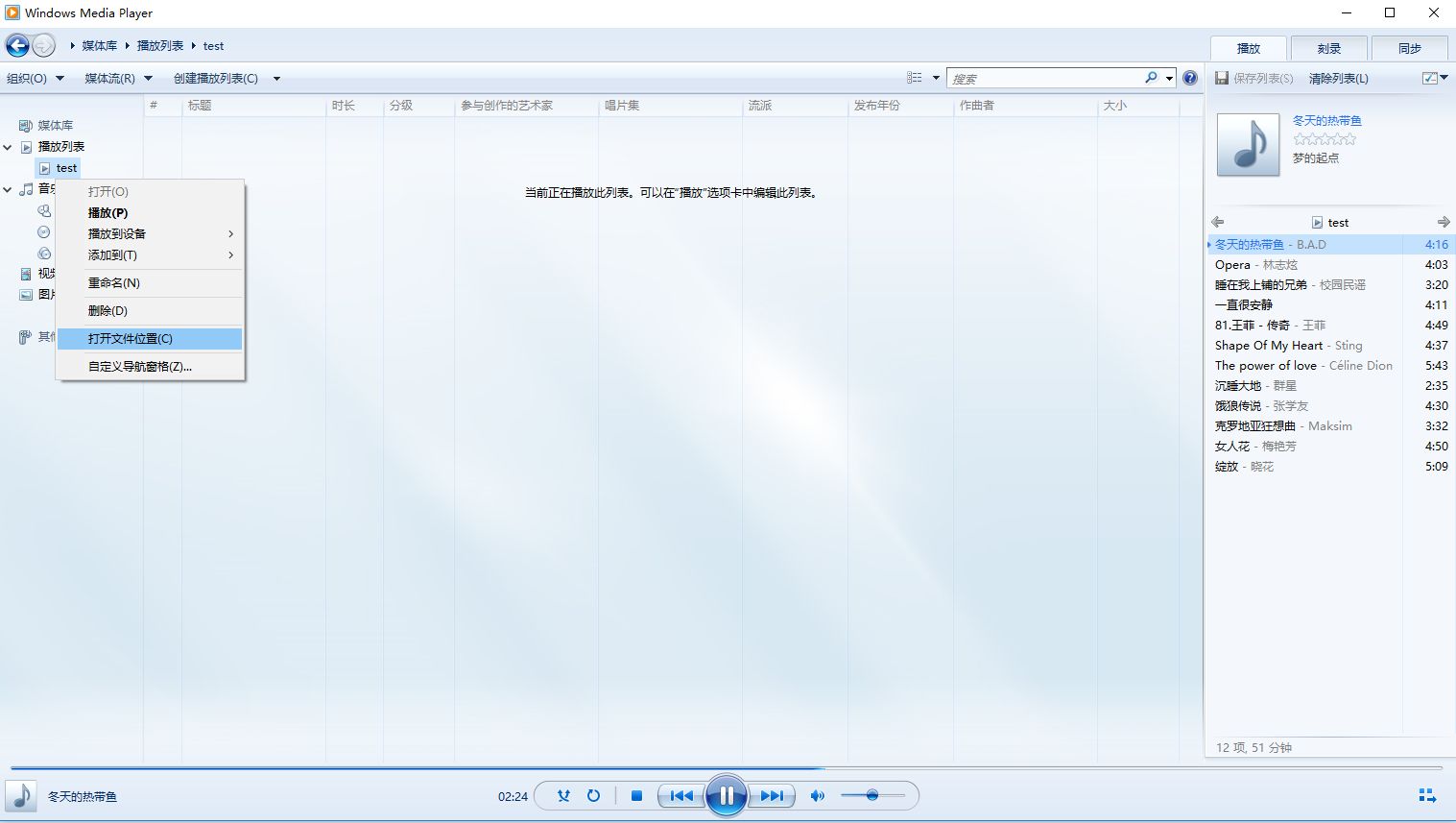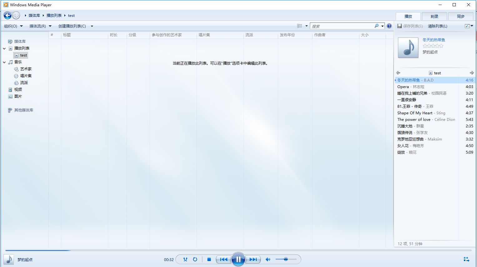 创建windows media player播放列表
