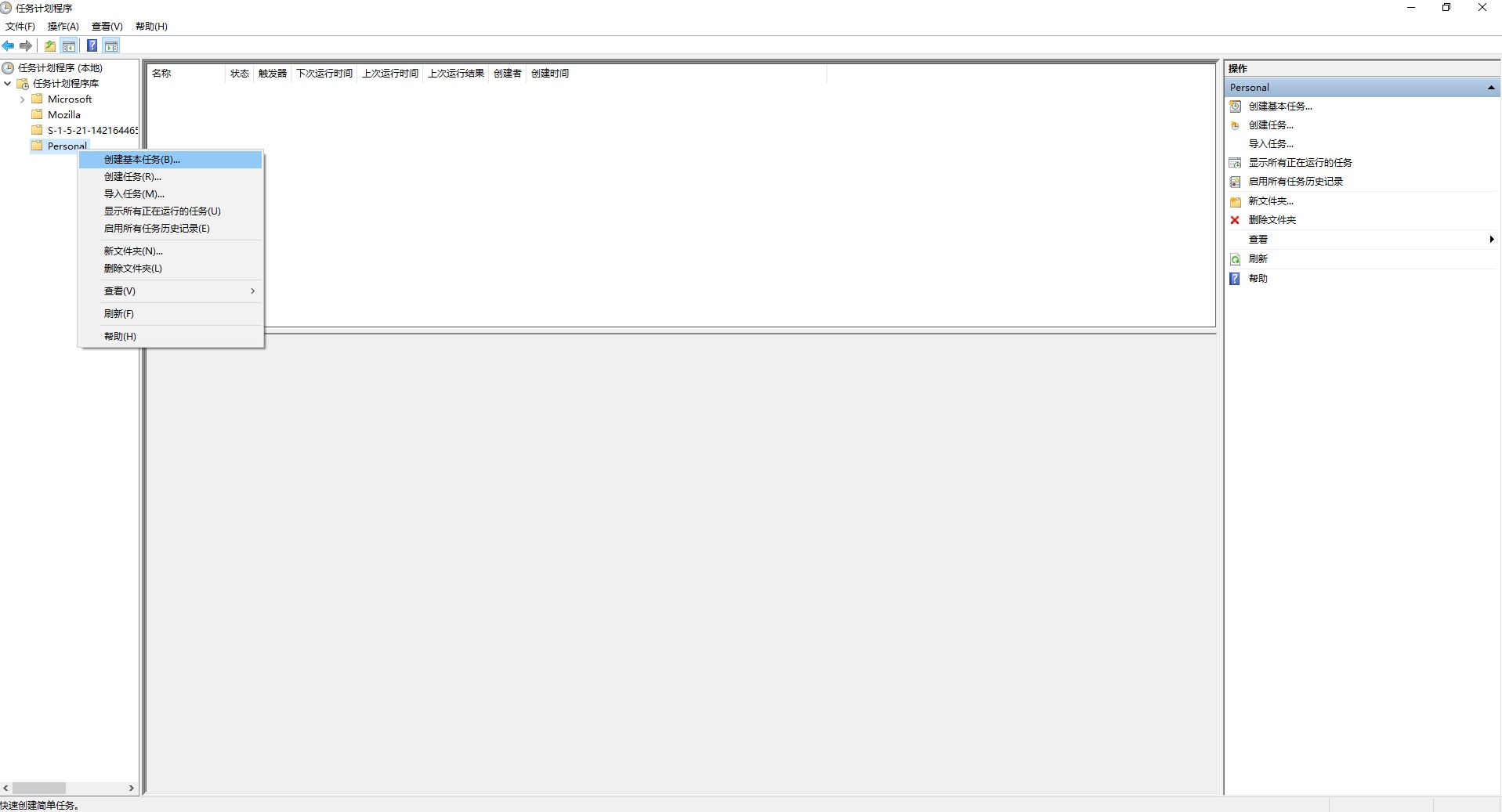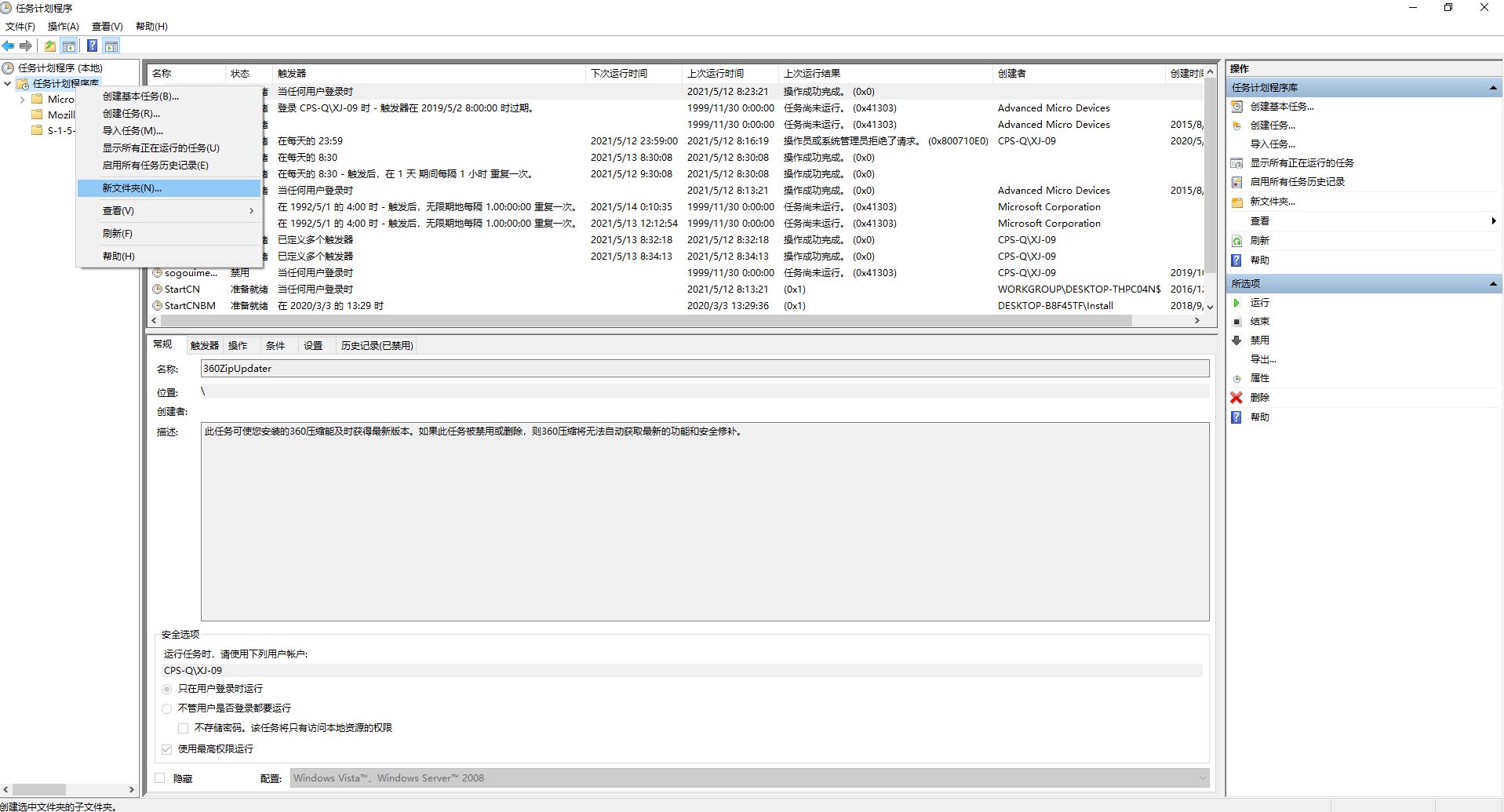 接下来打开计划任务,创建新文件夹,然后在新文件夹中创建新的计划任务。