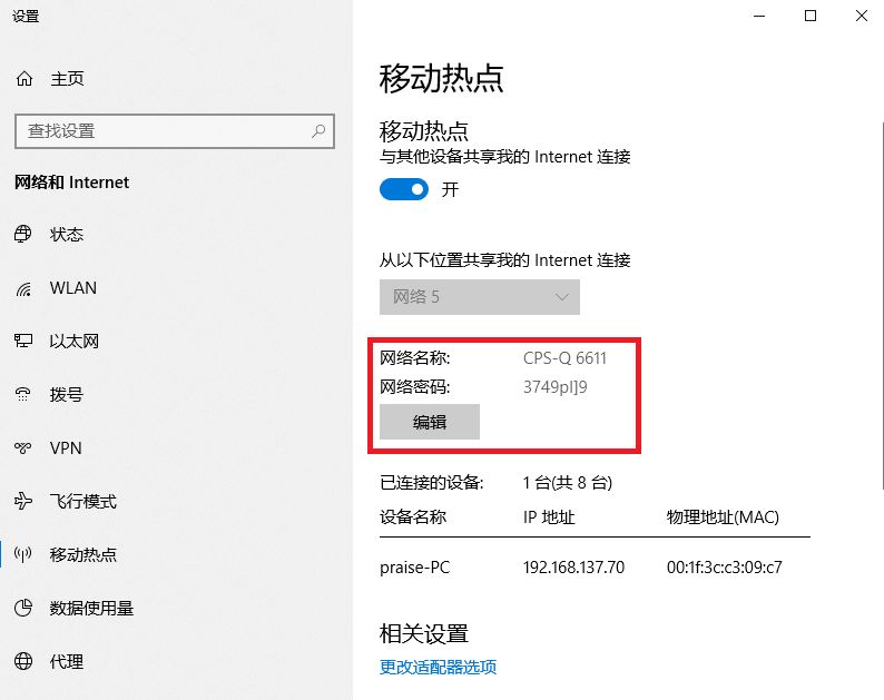 可点击“编辑”按钮修改网络名称和密码。