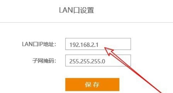 7、在右侧页面中就会打开Lan口设置页面了,在这里输入新的Lan口IP地址就可以了,最后点击保存按钮,路由器重新启动后即可生效。下次再登录路由器的时候,需要使用新的路由器IP地址。