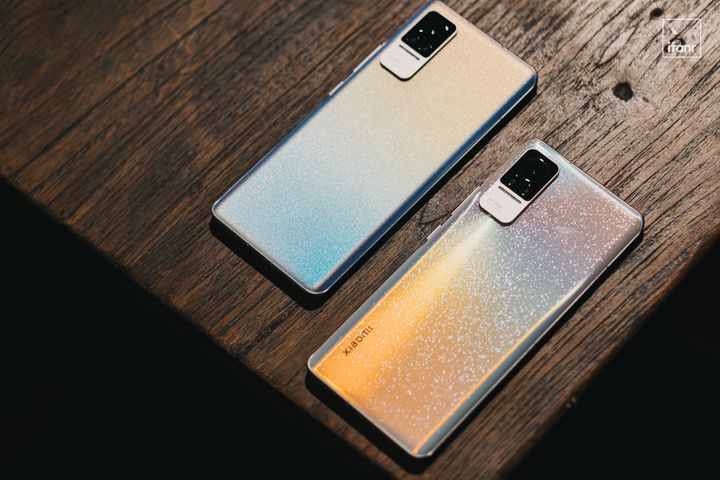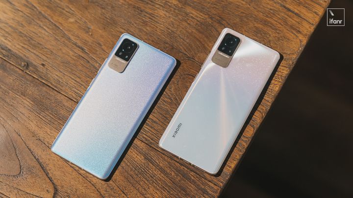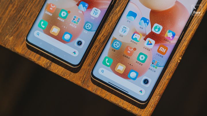 新旧款直接对比,能够看到小米 Civi 1S 已经从前些年流行的大颗粒变成更细微的闪钻处理,渐变色的饱和度降低了不少,只保留了一层清淡的颜色变化在白色机壳上。机身触感比上一代光滑,裸机的握持感也有不同。