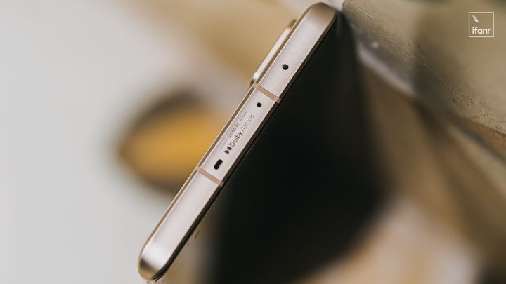 USB-C 接口和卡槽还有扬声器开孔放在底部,杜比全景声的认证标志就放在顶部。