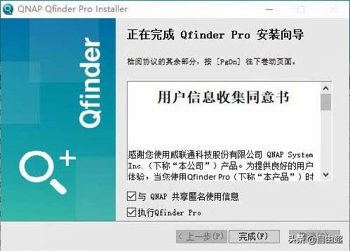 这里注意下:不要勾选‘与QNAP共享匿名使用信息