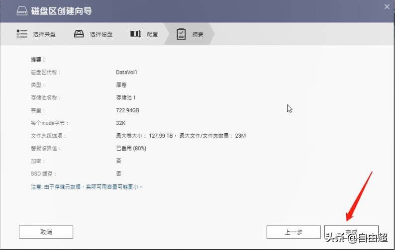 创建完成存储池之后,会自动弹出创建卷的窗口,点击【新卷】