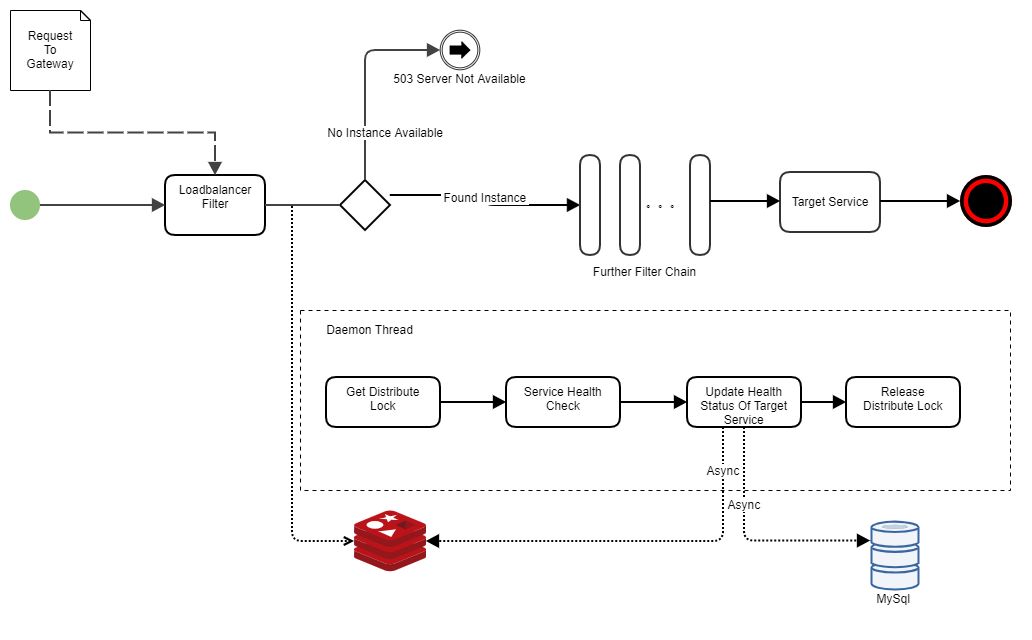 网关在转发请求到代理服务之前需要通过负载均衡获取代理服务节点信息,负载均衡需要根据从服务发现结果查询节点信息。因此网关需要启动守护线程每秒主动探知代理服务健康状态保存最新的代理服务节点信息