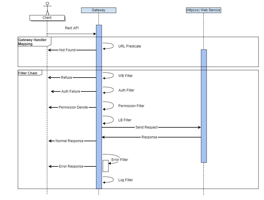 目标服务http(s)web 服务或者websocket服务,请求经过请求路径断言(Path Predicate) 当断言为真时继续执行filer链,其中负载均衡过滤器决定路由请求到到指定服务地址,其中负载均衡断言需要自定义采用加权轮询法实现负载均衡