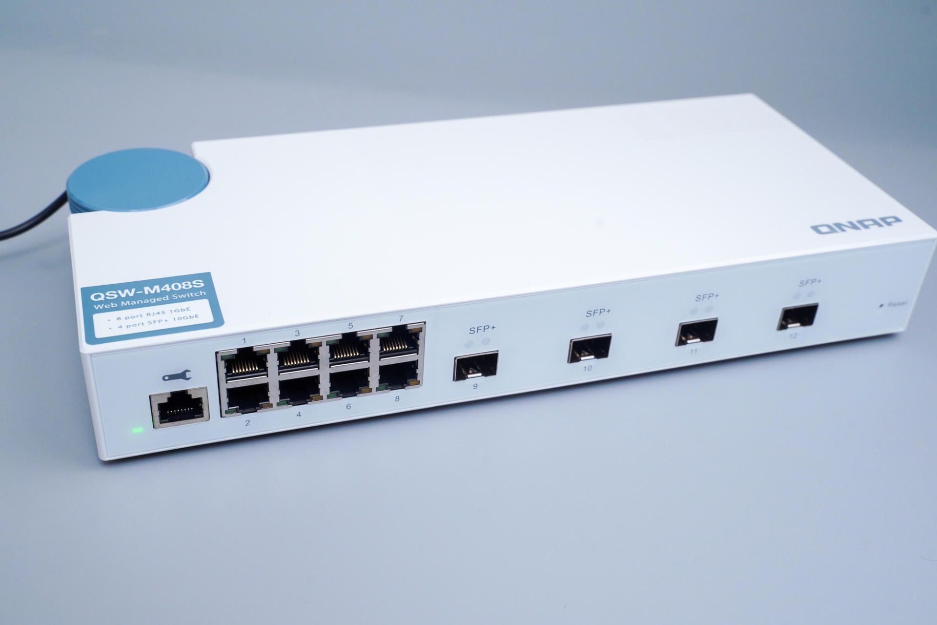 而如果预算稍微高那么一丢丢的话,可以加个一百多元,入手和我一样的威联通QSW-M408S 万兆交换机: