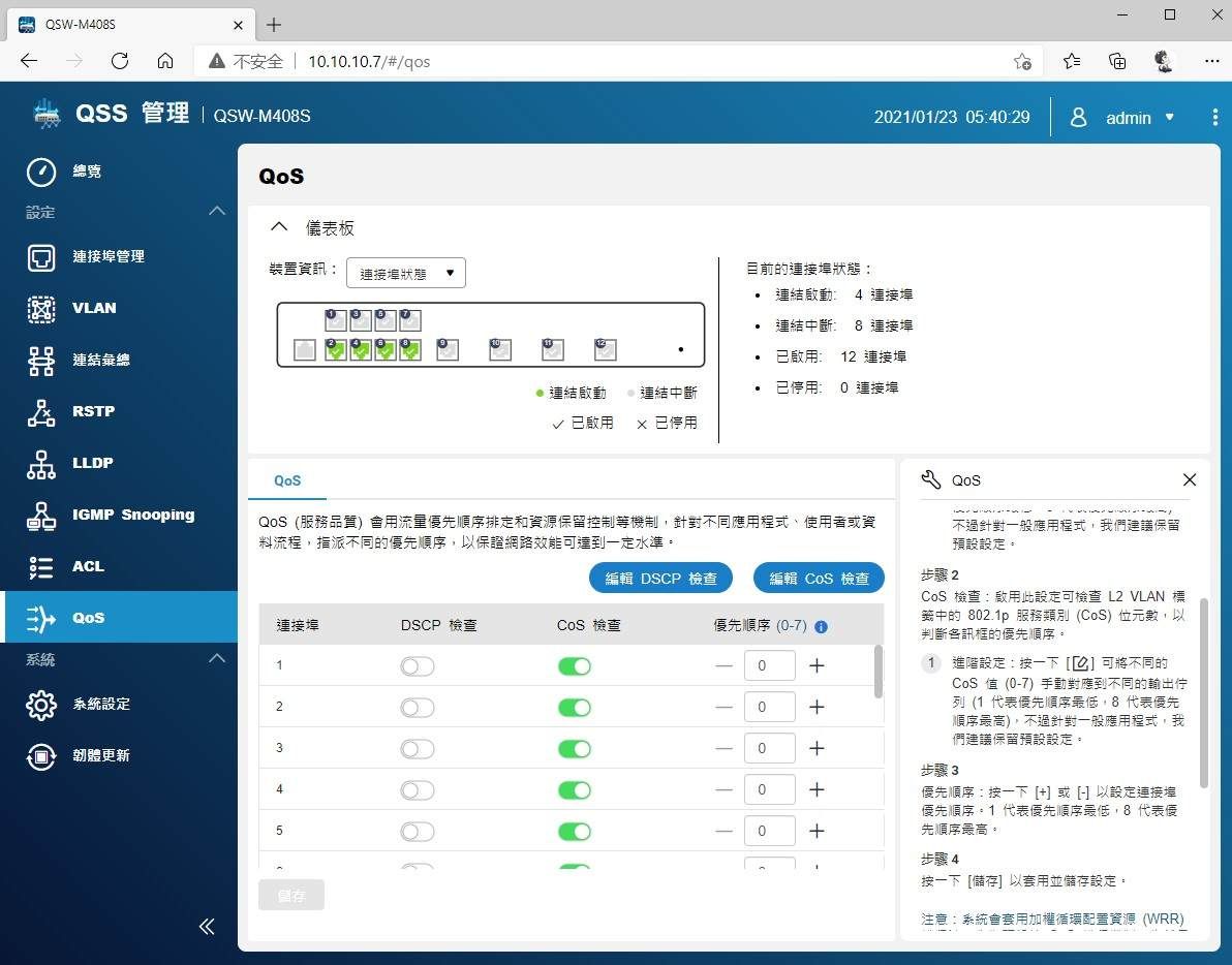 而这个QSW-M408S,是带有链路聚合的万兆交换机,而且多一个口,并且有QSS管理系统,功能丰富,则更强大:
