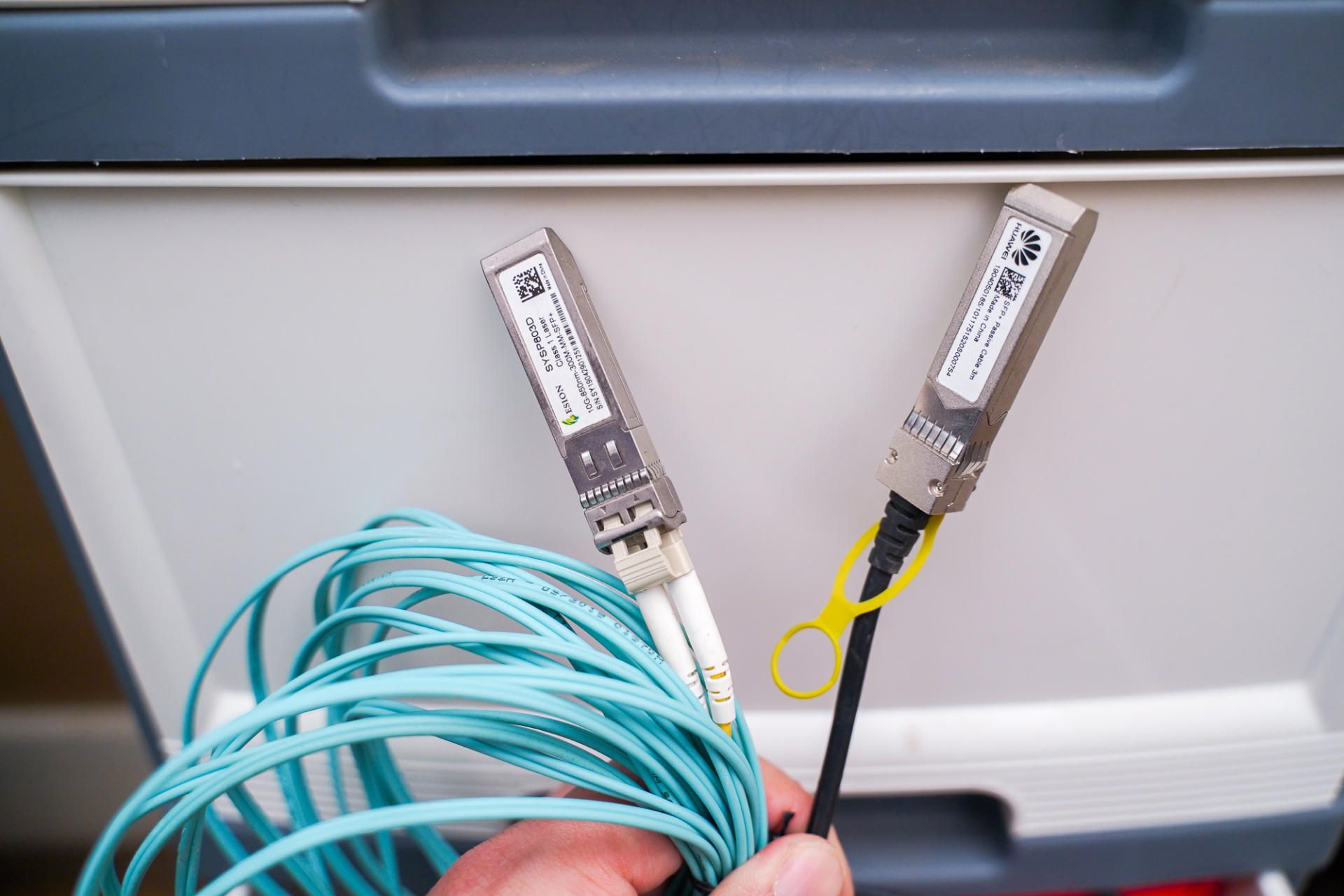 光纤价格比较贵,我后续几乎都是换成了下图右边的这种一体的SFP+铜线: