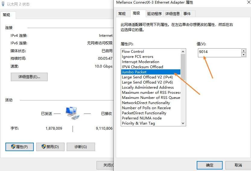 5、然后将网卡的Jumbo Packet 的值改成9014: