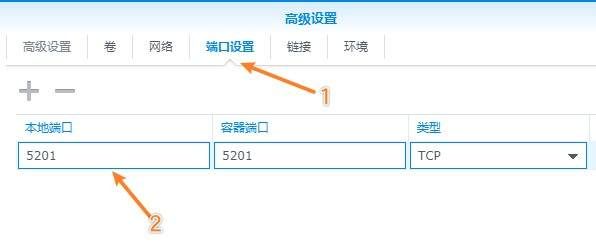 4、只需修改端口设置的本地端口,改成和容器端口一致的5201:
