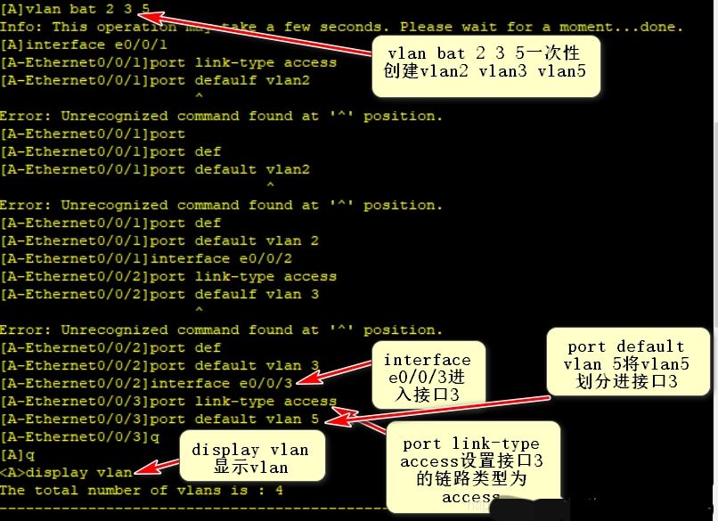在实际的操作当中 我们找到对应接口,需要一个接口对应一个vlan,最好提前把对应的接口和vlan记下来,这样vlan多了以后也不会弄混,vlan设置成功以后,可以用display vlan查看当前的vlan看有没有设置成功