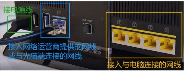 在开始使用华硕路由器APP之前,首先需要先连接两条线到路由器