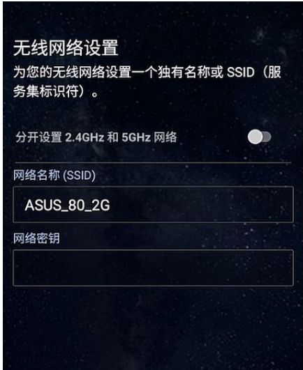 注意:如果您需要分开设置2.4GHz和5GHz网络,请开启此功能并分开设置各频段的无线网络名称和密码。