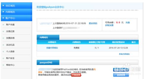 然后点击“动态域名”选项卡,选择“域名列表”选项,点击“创建动态域名”。