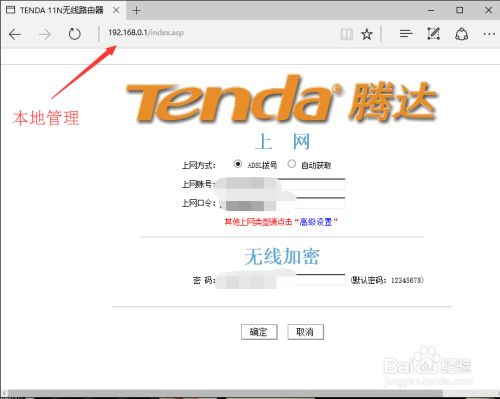 首先登陆路由器管理界面,在路由器背面的铭牌上可以找到“路由器管理地址”及“用户名”和“登陆密码”。在这里以“腾达”路由器为例。