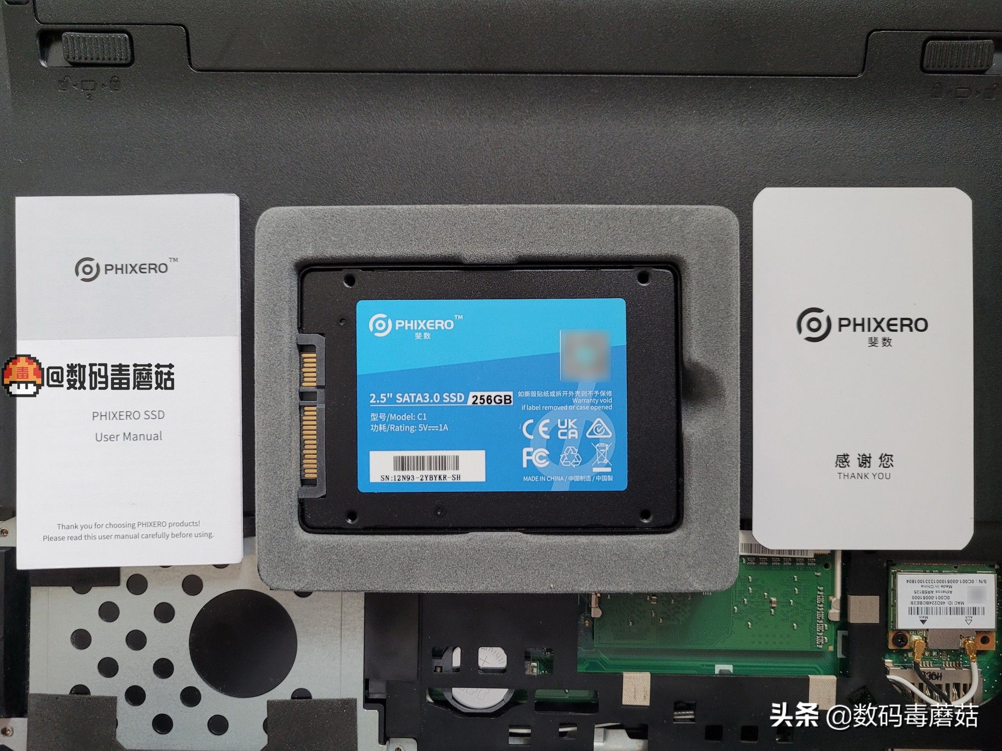 正好想到网X云可以拿X86机型挂机赚点零花钱(这货不是挖矿,是流量资源变现的分布式CDN模式,就是给人当个肉鸡……),所以顺手换个固态硬盘,发热低功耗小无噪音,而且比机械硬盘4K要快,收益肯定高一些。这款固态是斐数C1,容量为256G。