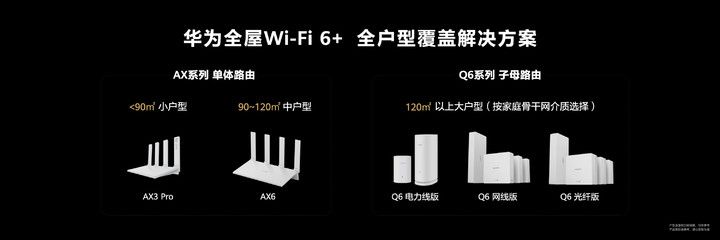 为了满足不同家庭的网络需求,华为这次推出了两套上网组合方案:针对小户型的华为路由 AX6 和针对大户型的华为路由 Q6。