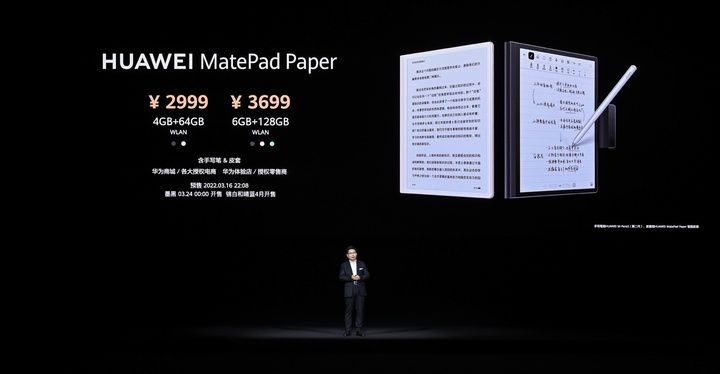 - 华为 MatePad Paper:2999 元起,首款 HarmonyOS 墨水平板