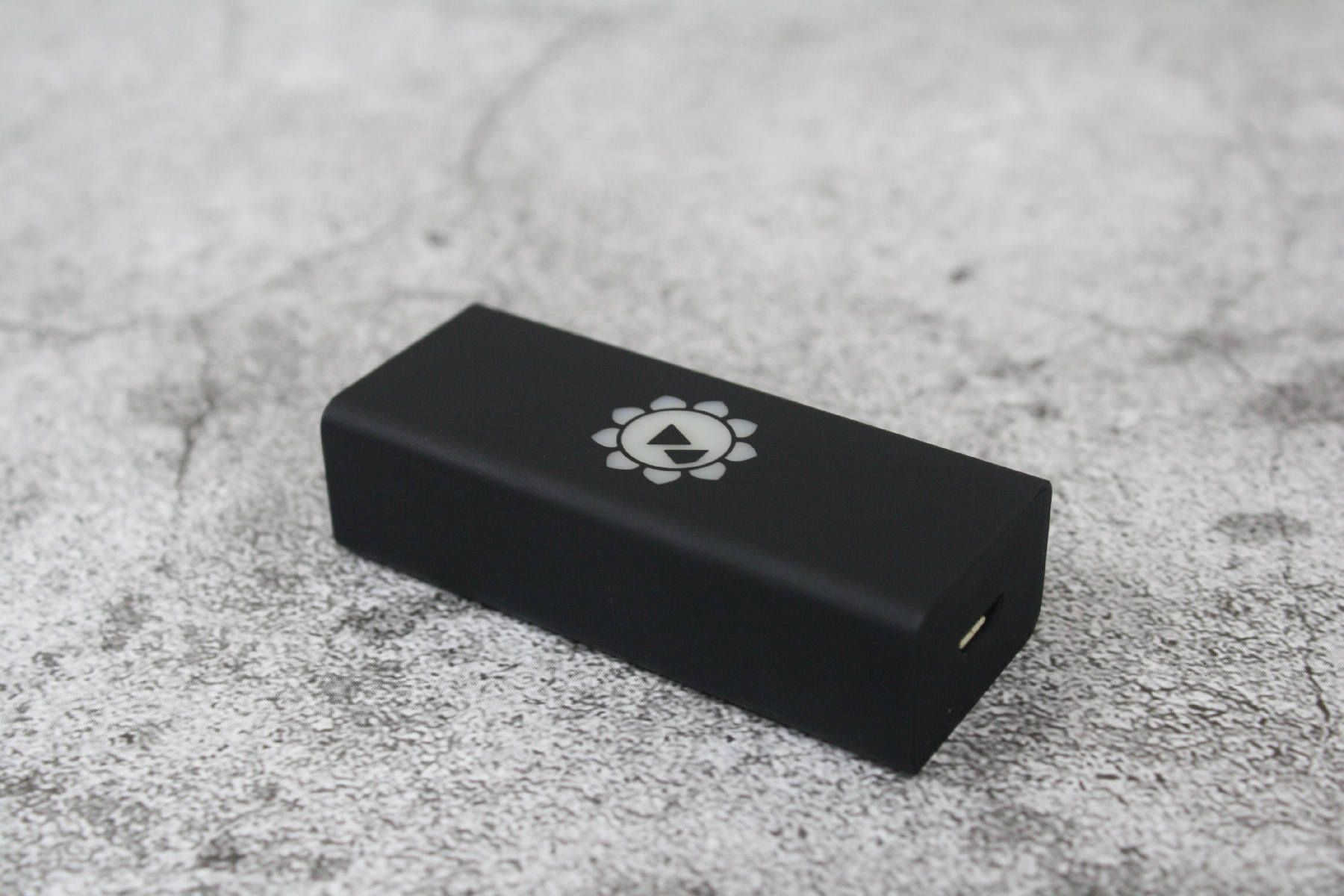 开机棒外壳为哑光黑,上方印有向日葵的Logo,Logo同时还是指示灯,可通过红、绿、蓝三色的常亮和闪烁表示开机棒的不同状态,方便用户了解机器具体状态。开机棒背面则是印着设备唯一的“身份证”:SN码和MAC地址,用于绑定和登录。