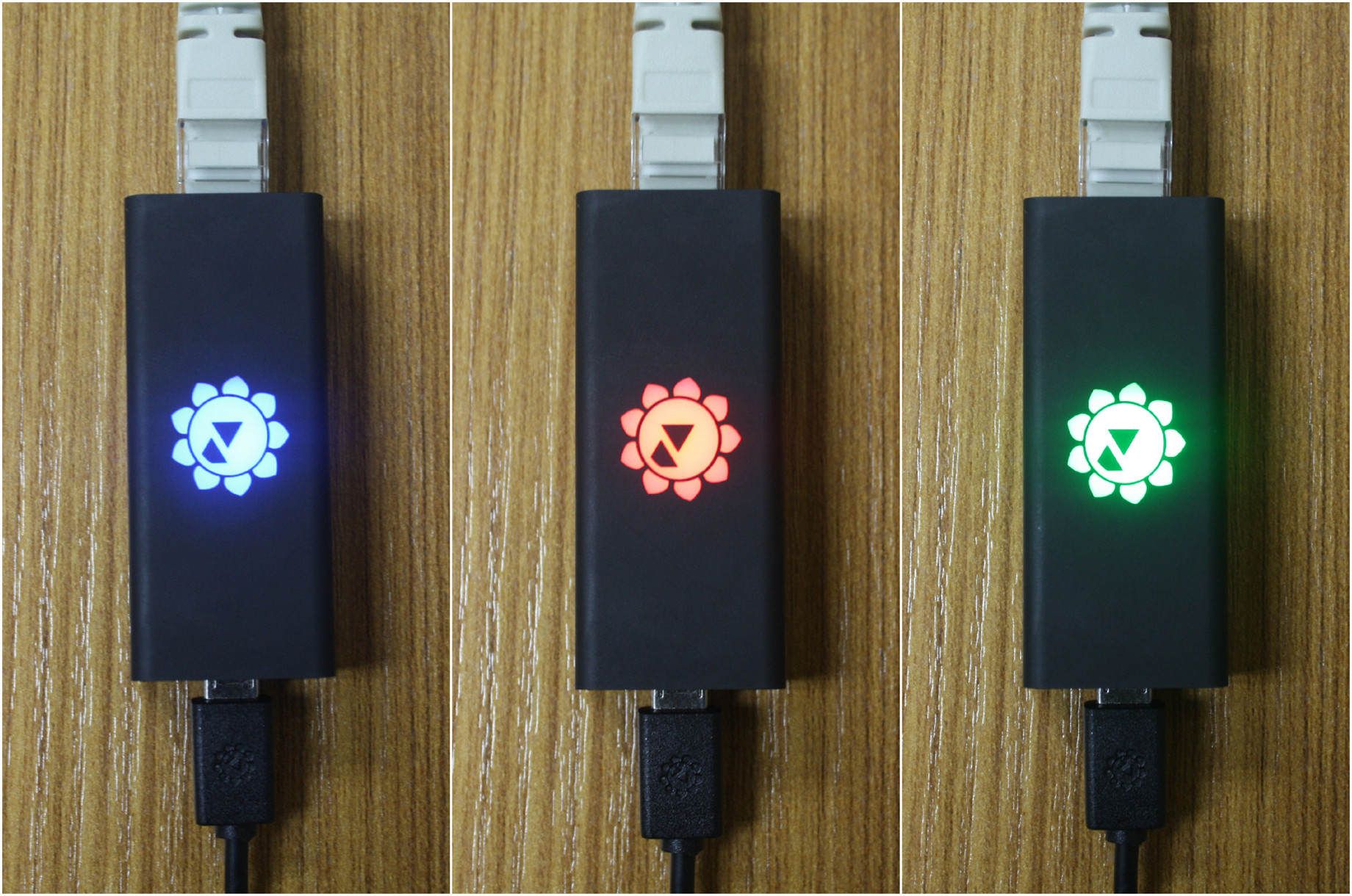 连接完毕后,我们观察开机棒指示灯,指示灯未亮则表示未通电,蓝色灯常亮表示正在启动服务,红灯常亮表示无网络,红绿蓝三种颜色交替闪烁表示正在连接网络或无法获取IP,当绿灯常亮时则表示开机棒已连接网络,可以正常工作了。