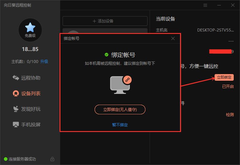 远程控制的话,需要用到向日葵软件,这个让每个同事自行下载安装就可以了,登录帐号时会提示绑定帐号,绑定之后就可以远程控制了。