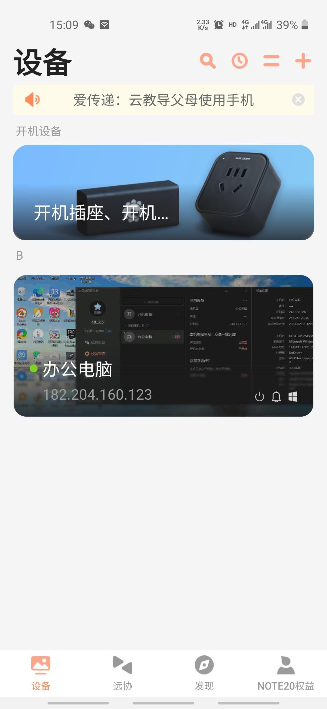 远程开机的目标达到了,接着是远程控制,远程控制可以在PC上进行,也可以在手机上进行。PC上的远程控制想必不少人都用过,我们还是看下用手机怎么远程控制吧。用的是向日葵远程控制APP,登录向日葵账号后,就可以看到已经开机并在线的电脑了。