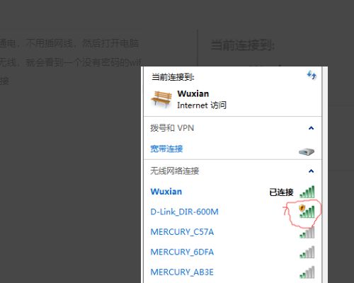 1、把路由器通电,不用插网线,然后打开电脑或者手机无线,就会看到一个没有密码的wifi,然后连接。