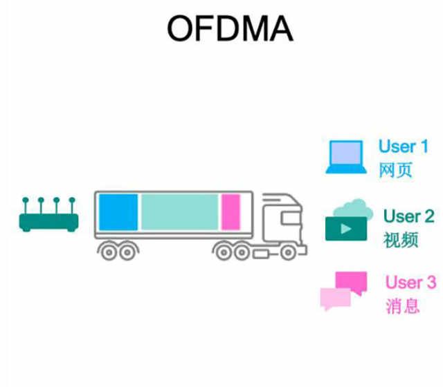 而在Wi-Fi下OFDMA技术可以让三个终端进行“拼车”,让它们搭乘在同一辆“车”上,然后在自己目的地下车即可。这种形式下减少了信号通道的挤占,网络自然是更加通畅了。