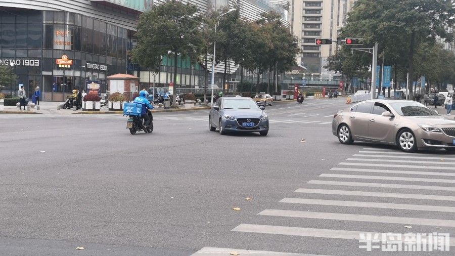 11月8日中午12时许,记者又来到了市北区凯德茂附近,此时路上的外卖送餐车辆达到了最顶峰,外卖送餐员的急迫心情也达到了最顶峰,从他们在路口处的行为就很明显能够看得出来。台柳路左转的车还没走完,此时对向直行为红灯,一名饿了么骑手就已经等不及了,晃晃悠悠开车直行就到了路中央,看到左转车辆跟车较密不好通过,稍微一停之后看到最后一辆左转车通过赶紧加油门快速通过。在一旁的记者测算,这以危险的举动,也就给他节省了不到10秒钟的时间。
