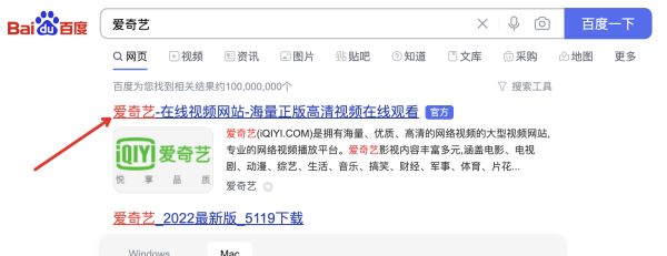 百度搜索爱奇艺,点击进入
