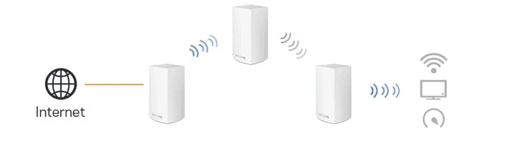 ▲Mesh组网相对于AC+AP的设置免去了布线问题,通过在区域内部布置多个路由器,路由器和路由器之间通过无线连接,形成网状网络架构,每个节点通过与其它节点的连接保证网络质量的稳定和无线信号的有效覆盖。