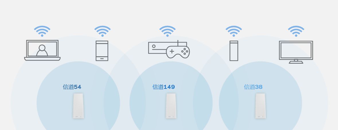 ▲Mesh组网采用无线设备,家里的网络设计简单方便,不需要排网线,只是需要一个插头就可以搞定节点的布线,实在是要比AC+AP的方式要简单很多,基本可以做到无损升级家用网络。如果之前就有网线,也可以使用网线连接,实现有线Mesh组网,网速体验又会更上一层楼。同时Mesh组网还有单路由的自动切换信道的功能,在家庭网络频段拥塞的时候可以自动切换到空闲的频道,保证家庭用户的无线网络需求。让家庭网络更加的畅通。