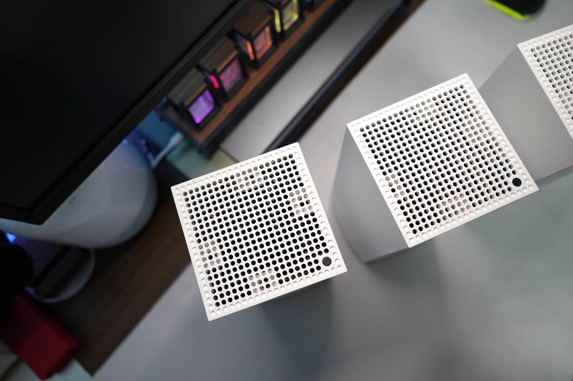 ▲可惜我自己对于网络速度有着很高的要求,家里的设备除了打印机,还有一个NAS依然占用千兆网口之外,其他的设备均采用无线连接,而WiFi6的设备除了手机,平板,还有三台笔记本和两个台式机。分布在书房,阳台,客厅的位置。在Mesh组网的方式下,不用担心单个路由器出现问题,影响家庭网络体验,同时在各个方面看电视播放影音的同时也不会担心网络拥塞。