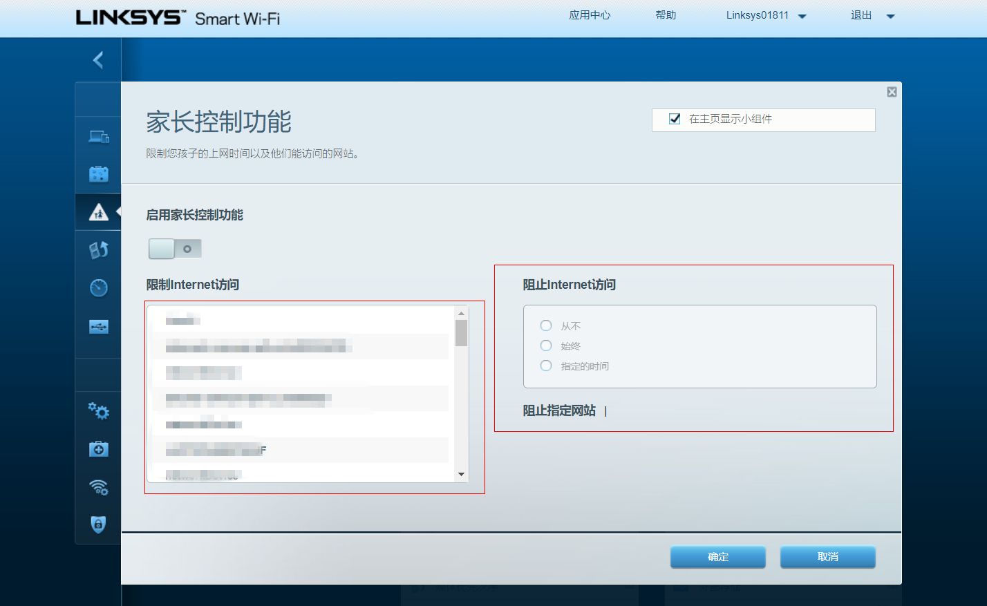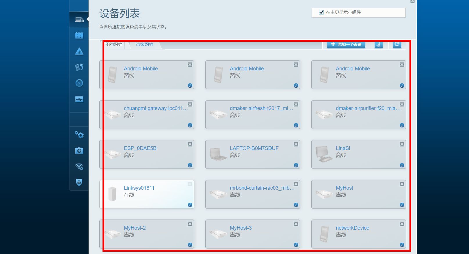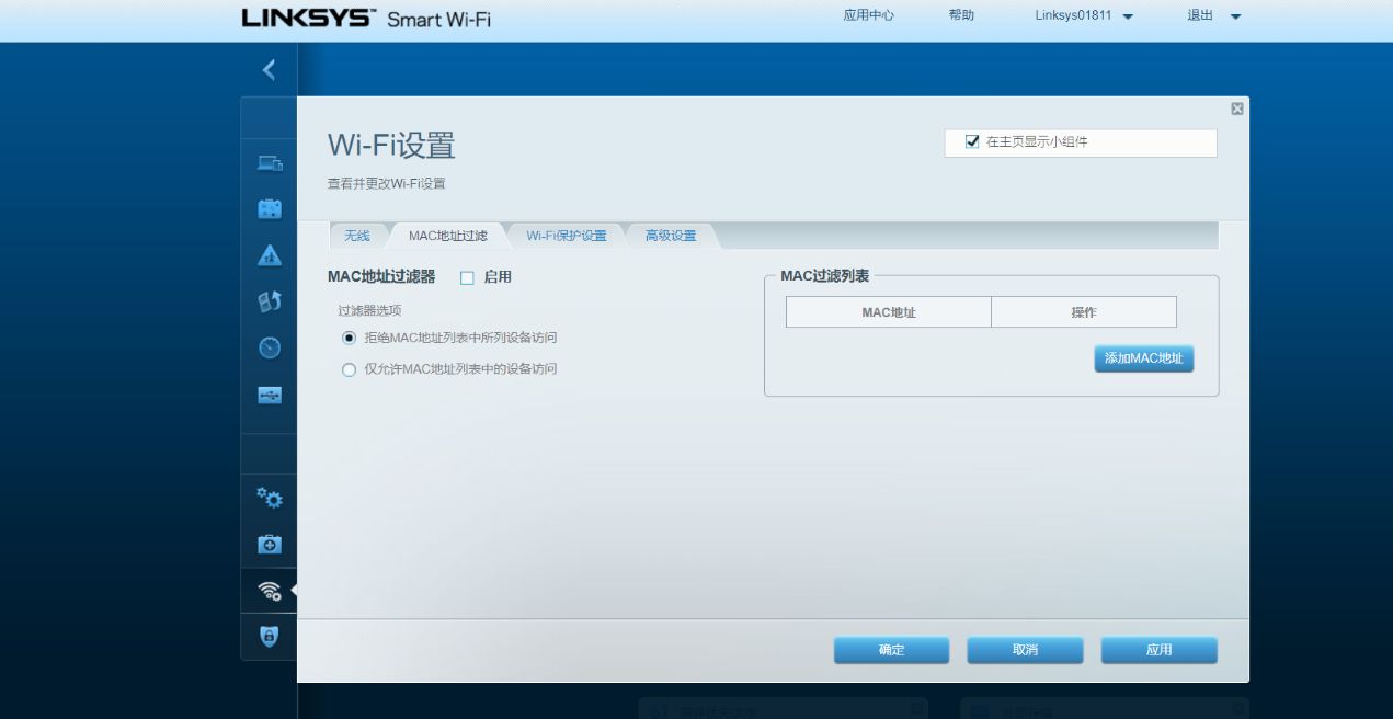 领势(LINKSYS)的MX4200的后台界面比较简单,相对于很多品牌真的简单多了,而常用的菜单和设置选项都可以选择作为小选项卡显示在主页面,为内置的默认选项卡包括