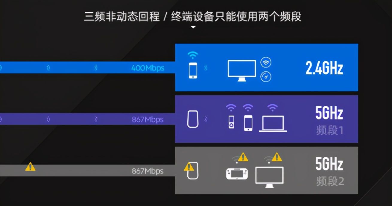 ▲如果单只MX4200使用,三频都可以使用,不过建议家里的平板和手机连接在最快的5G2频段,而其他的使用不多的可以放在5G1使用,而2.4G单独给家居的IOT设备使用,互相不干扰。