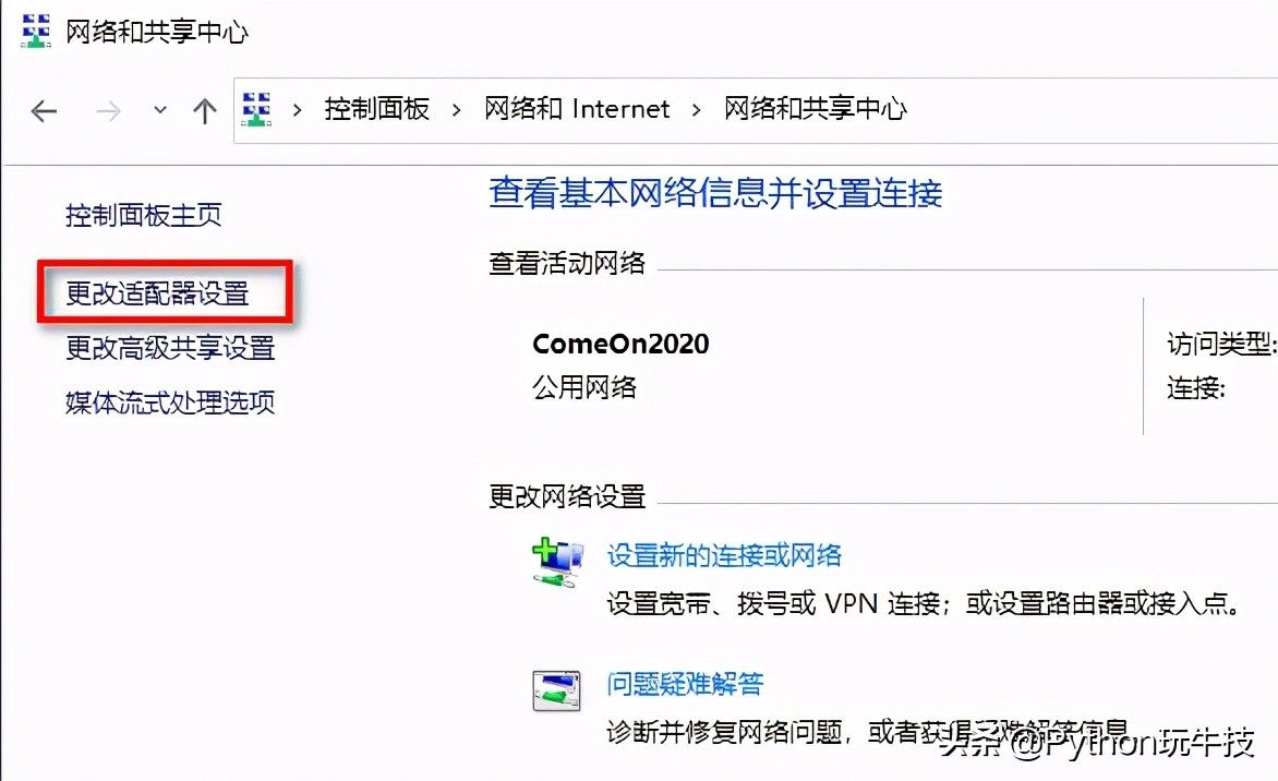 继续选择左侧的“更改适配器设置”,可以展现家里所有的适配器(无线/有线)。