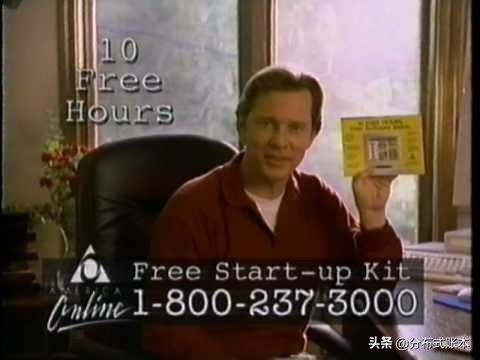 美国在线(AOL)的早期商业广告,这是最早的互联网网关之一。AOL向数百万人发送了带有其软件和10小时免费使用的CD。来源。