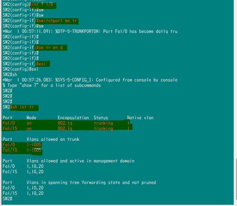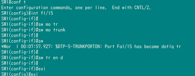 1-interface f 1/0 #进入SW f 1/0 端口 开trunk