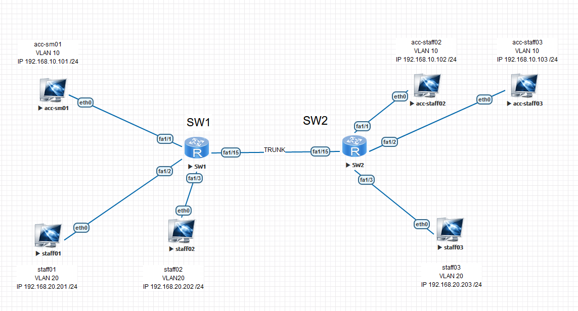 3-switchport trunk encapsulation dot1q #将trunk数据封装形式设置为dot1q