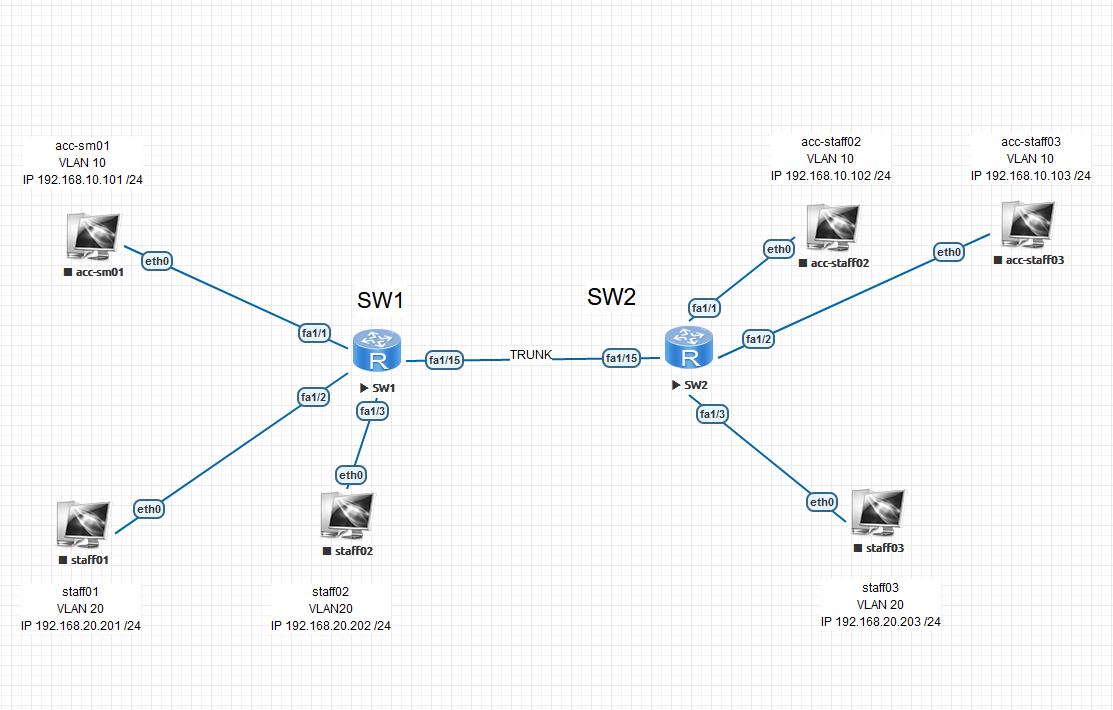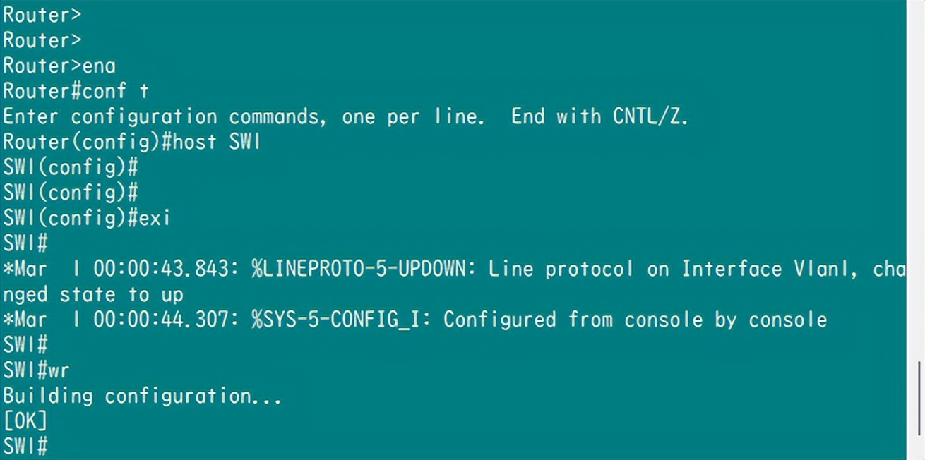 二层交换机主要配置:创建vlan、划分vlan、配置干道模式