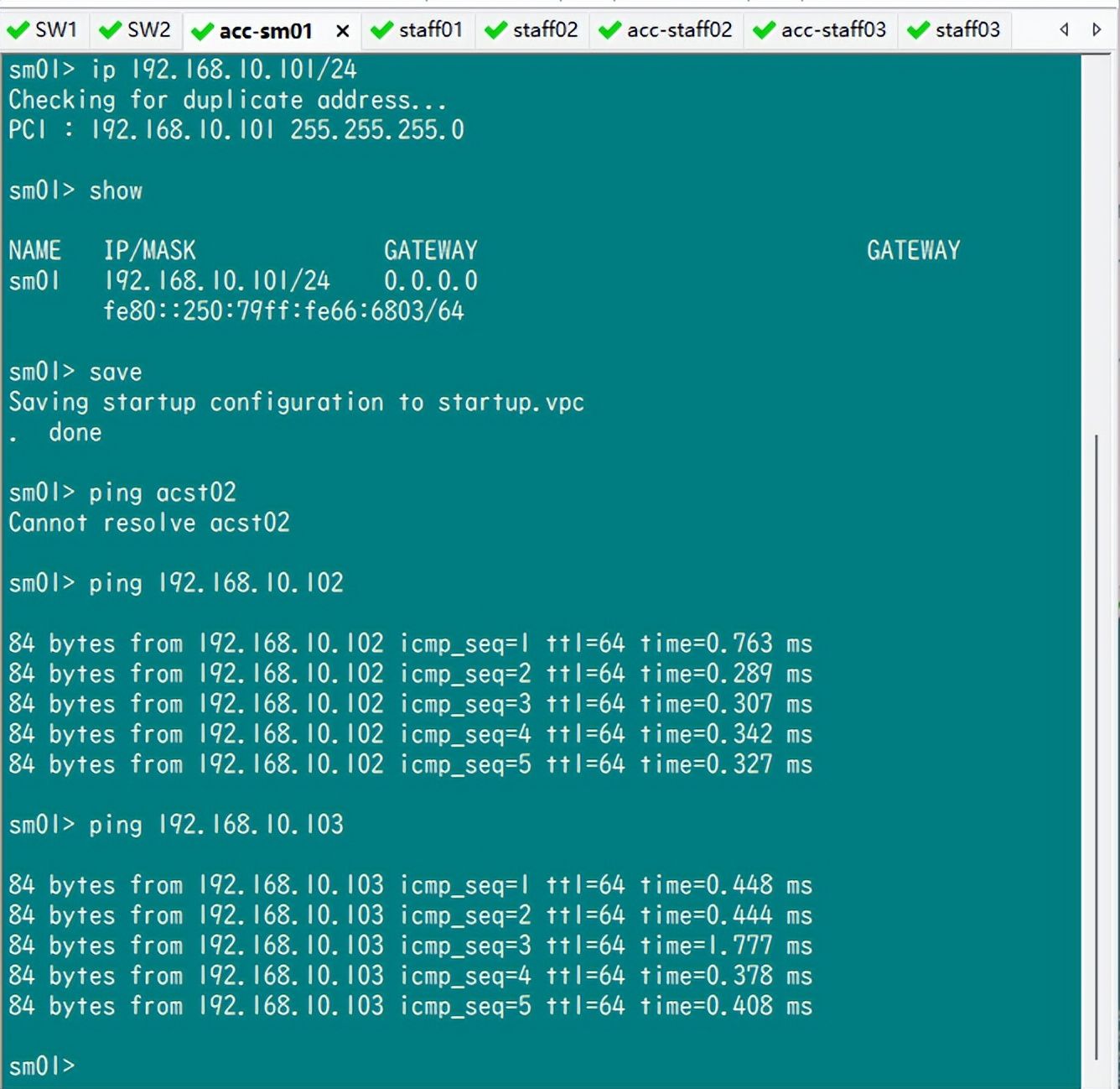 2-ip 192.168.10.101/24 #设置PC的IP为192.168.10.101 255.255.255.0
