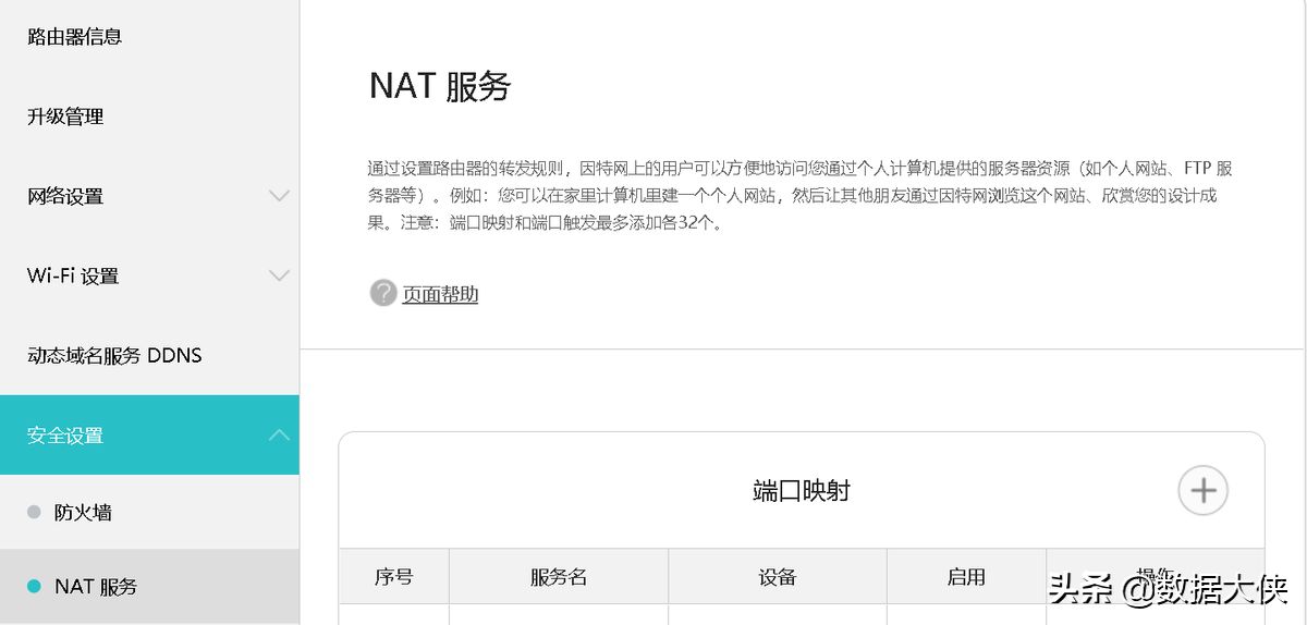 4、通过家用路由器的管理界面设置公网网络端口映射,将要访问电脑的网络端口映射到公网IP对应的端口,比如用于FTP服务器访问的21端口,典型的设置界面如下图所示: