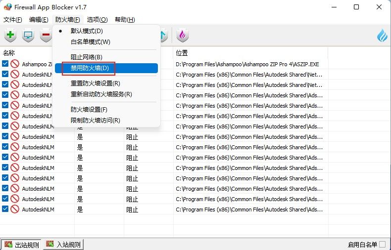 有时我们想禁止特定的程序连接到网络,以防止上传和其他操作。当使用第三方软件时,它会占用系统的资源。我们需要使用windows自己的防火墙,但是windows自己的防火墙设置很复杂,为大家推荐Firewall App Blocker,是一个防火墙配置程序。