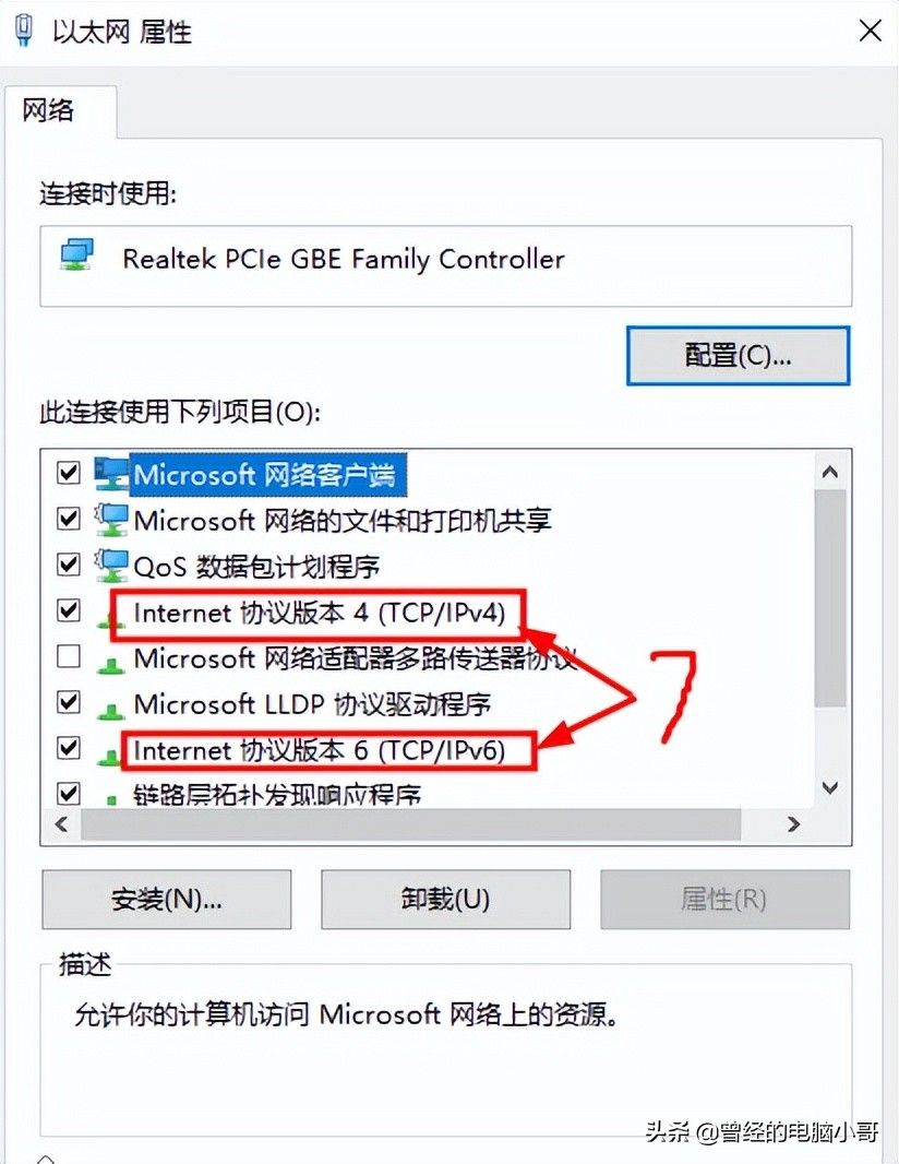 方法一:桌面上找到“网络”图标→右键鼠标点属性→更改适配器设置→以太网→右键鼠标点属性→双击IPv4或者IPv6即可查询IP地址。