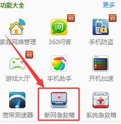 1,打开360安全卫士,单击动能大全里的断网诊断箱。