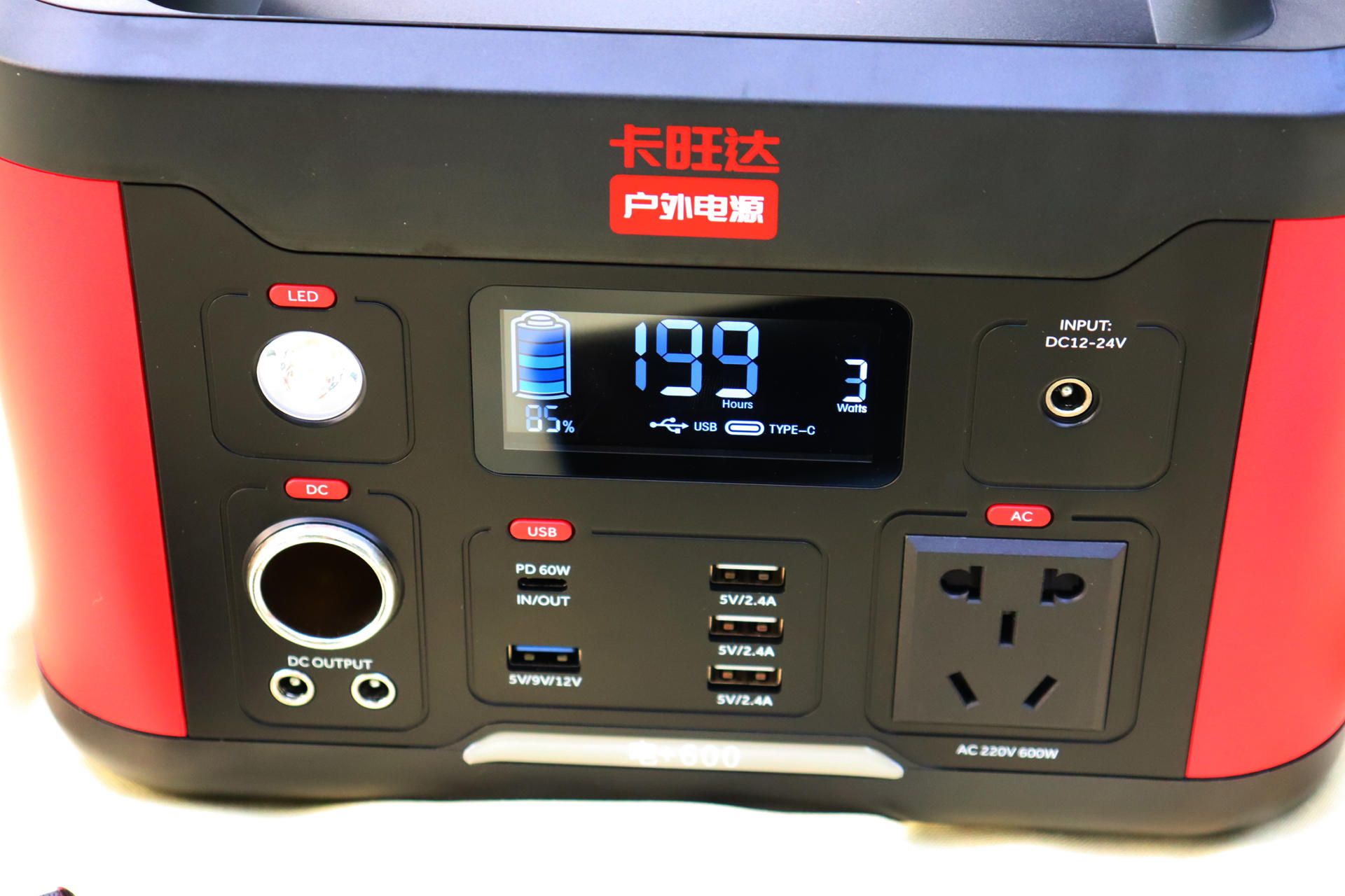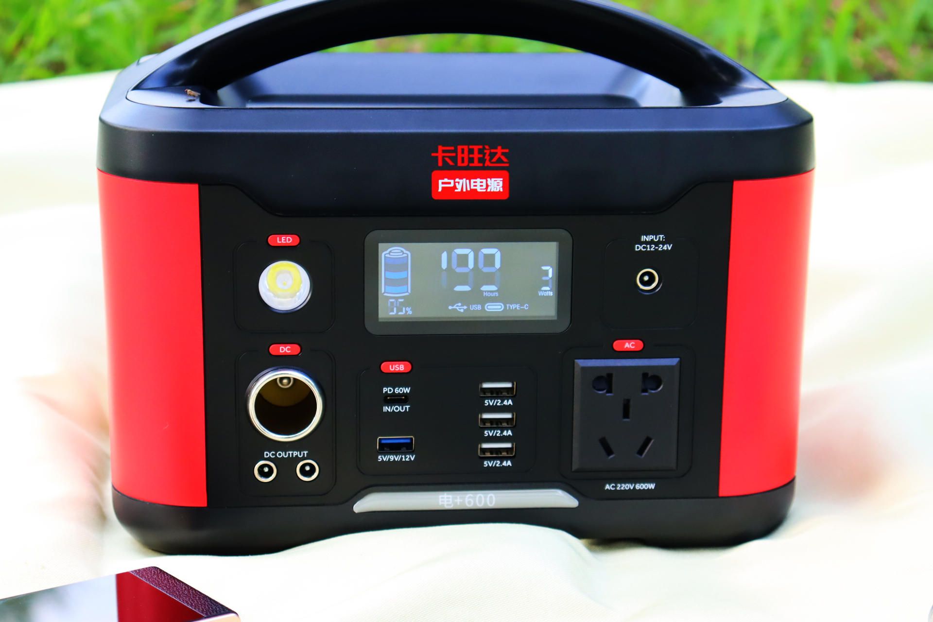 而作为户外电源的专业户,卡旺达推出了一款可以应对户外出行时各种不同用电需求的户外电源+600,它拥有174000mAH/626.4Wh,能适配600W及以下的多种设备供电,峰值输出功率高达1000W。
